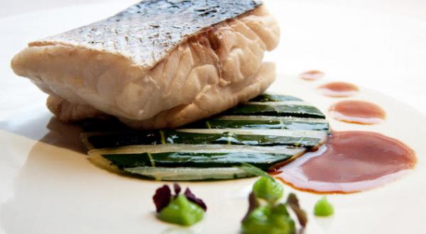 Déposer les cercles de blette dans chaque assiette puis dresser les filets de maigre sur leur bord.