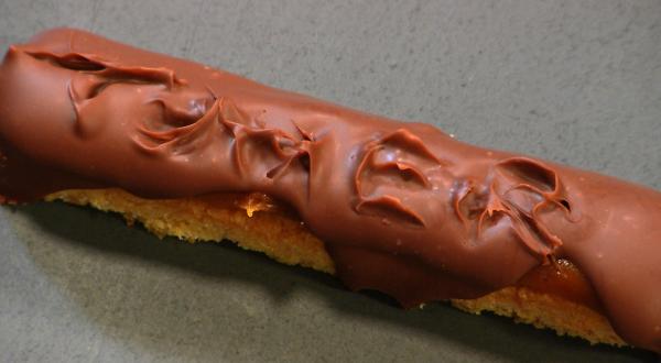 A l'aide de la poche à douille, disposer le caramel sur les lamelles de pâte sablée.